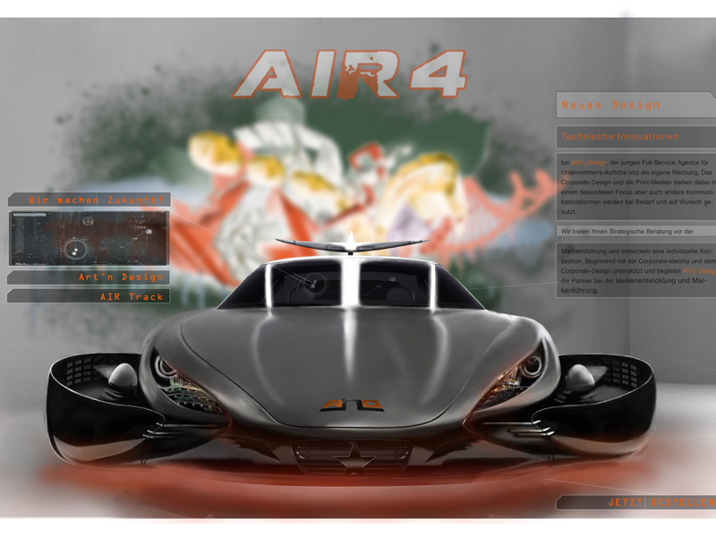 Für Euch haben wir das Konzept und das Design des Zukunft-Gleiter "Air 4", an dem CD von Art´n Design angepasst. Die Möglichkeiten, IT und Elektronik im Automobil einzusetzen, sind unbegrenzt. So zumindest scheint es, betrachtet man die zahlreichen Forschungsprojekte. Die Anforderungen an das Auto der Zukunft sind die grenzenlose Freiheit, verbunden mit innovativem Comfort sowie personalisierten Anwendungen an das Navigationssystem. Mit Hilfe dieser technischen Innovationen bekommt das Reisen eine ganz neue Bedeutung und Qualität. Das Fliegen und die damit verbundene grenzenlose Freiheit ermöglichen ein angenehmes und erholsames Reisen. Verstopfte Autobahnen, Feierabendverkehr und der Fernreiseverkehr zur Ferienzeit gehören der Vergangenheit an. Die Auswahl des Reiseziels ist die einziege Entscheidung, die der Fahrer treffen muß. Das Navigationssystem findet die comfortabelste und schnellste Reiseroute.
